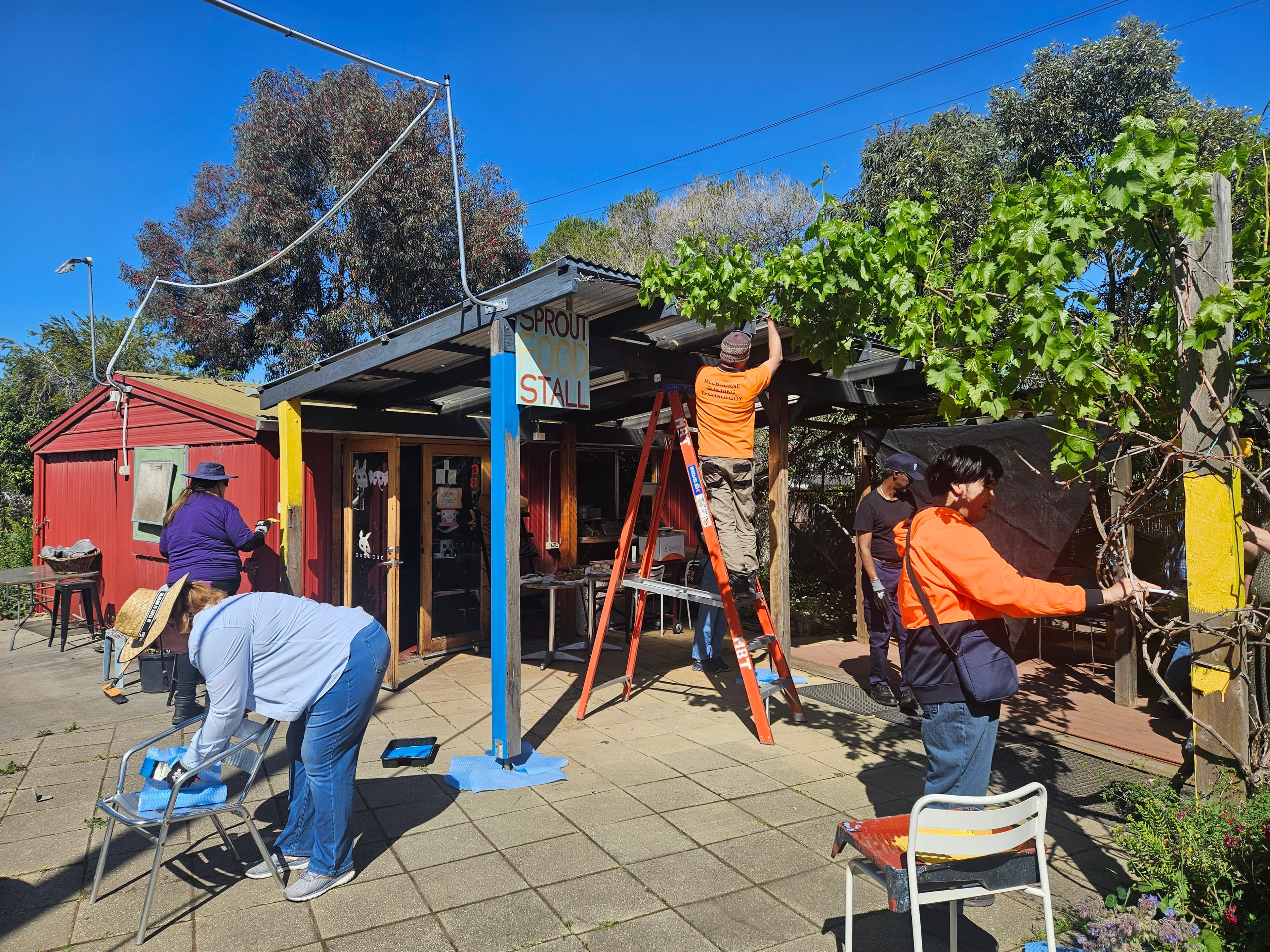 Their efforts included painting support posts, installing new shade sails and blinds, building bench seating, weeding and mulching the garden beds, cleaning out the shed and giving the entire site a much-needed tidy-up.
